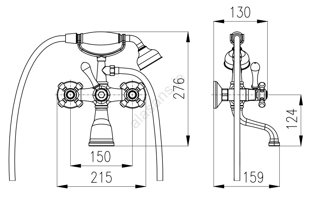 • Included in the package: metal hand shower (Ø 76 mm), plastic shower hose (length 1500 mm), bath mixer.