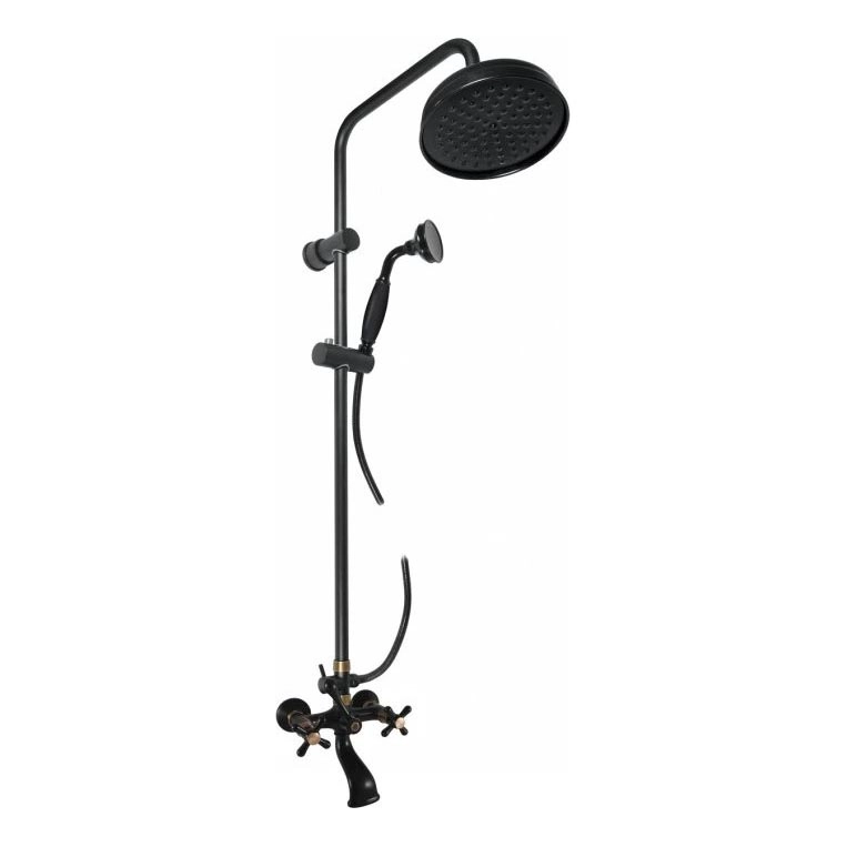 • Complete bathtub set with a wall-mounted tub faucet, fixed shower head and handheld shower.