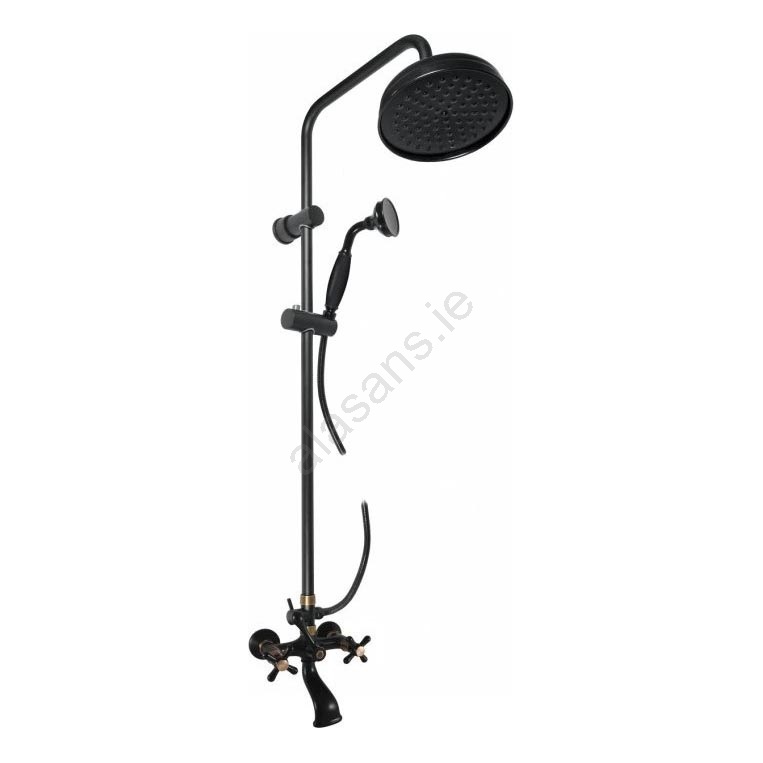 • Package contents: metal handheld shower (diameter 76 mm), shower rail with a single wall bracket (including slider for the handheld shower and ceramic diverter), metal fixed shower head (diameter 20 cm), plastic shower hose (length 150 cm), bathtub faucet.