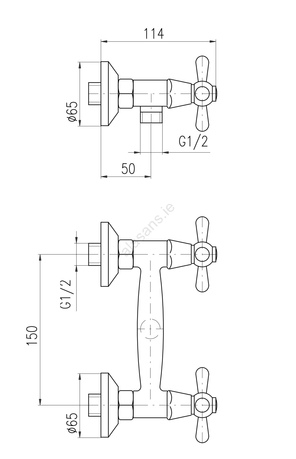 • Wall-mounted shower mixer.