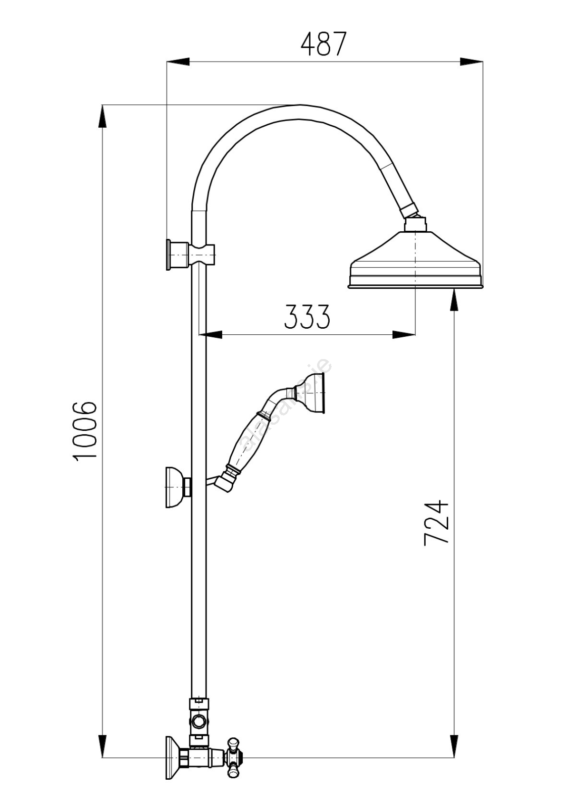 • Wall-mounted shower mixer with overhead and handheld shower.