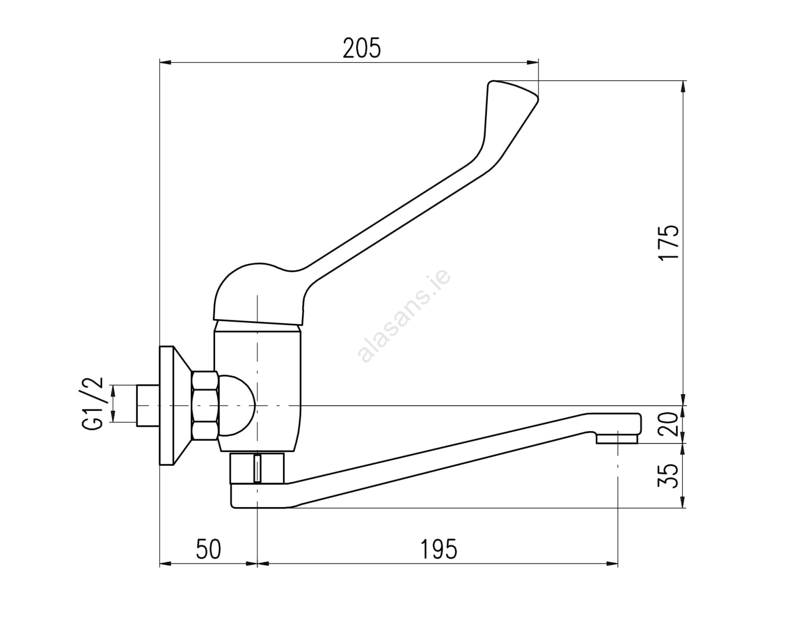 • Deck-mounted basin faucet without pop-up waste, fitted with a medical lever.