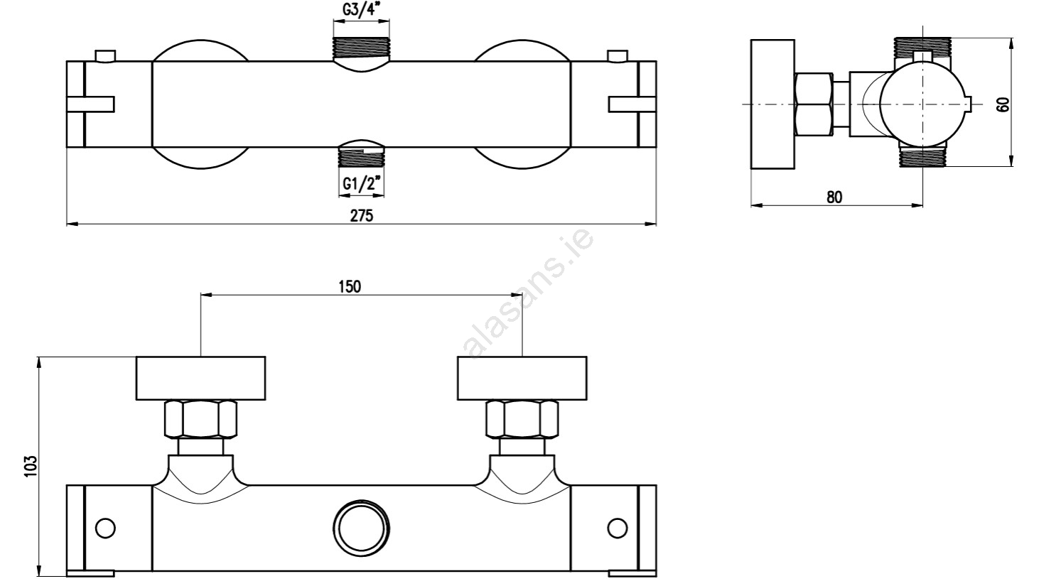 • Mains-fed thermostatic shower mixer.