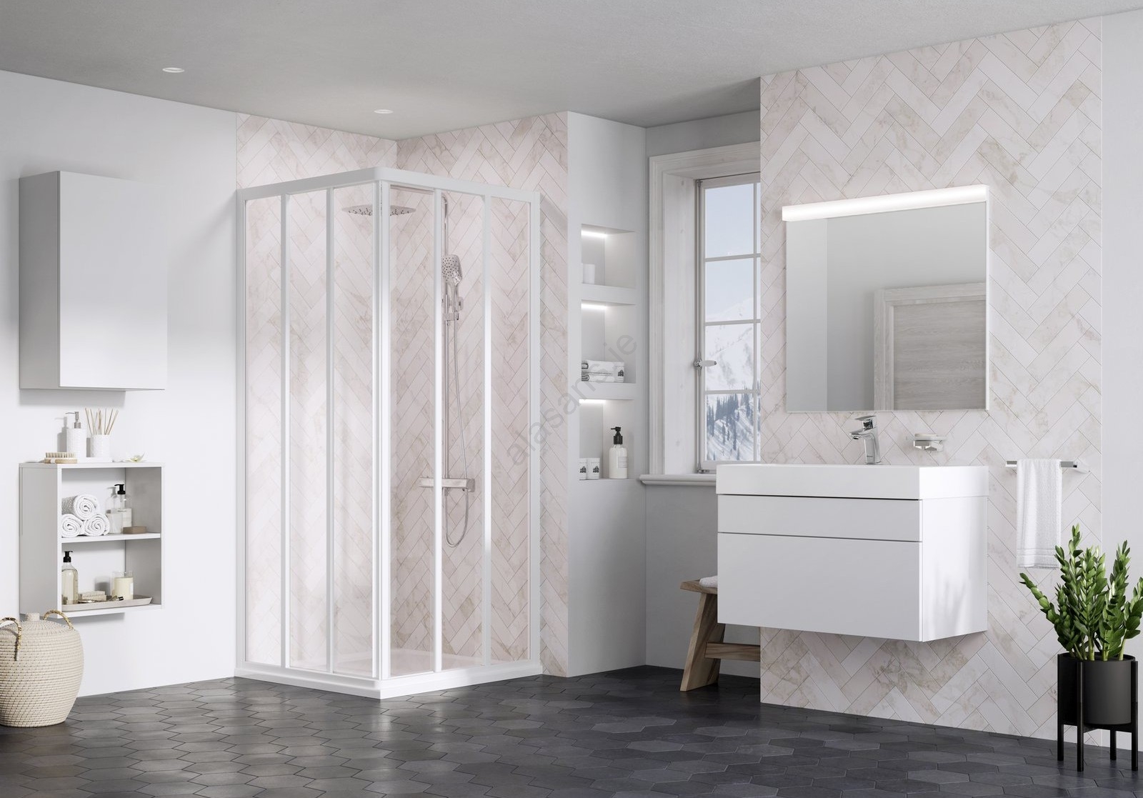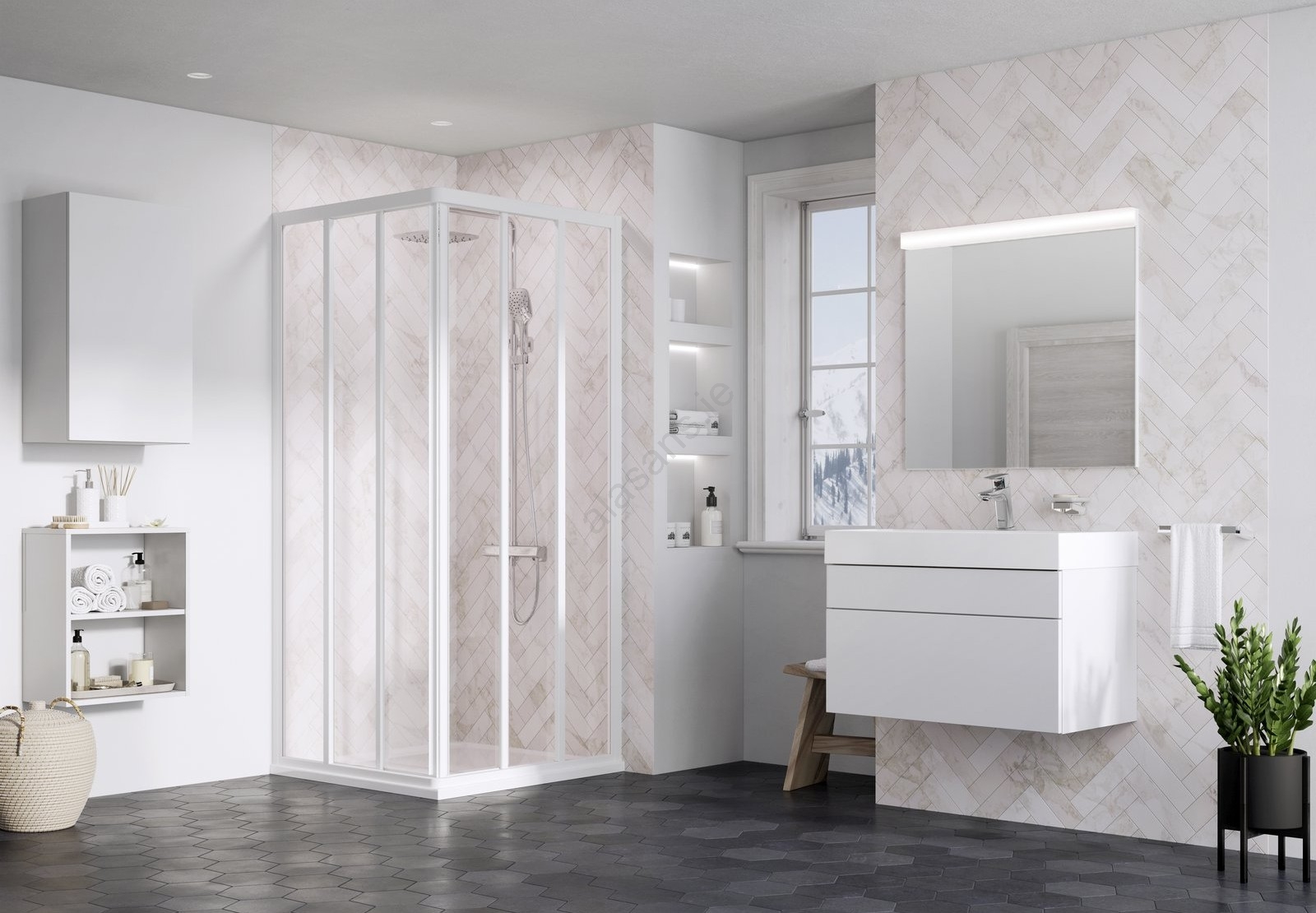 • The white frame combined with clear glass gives the shower enclosure a modern, timeless appearance and ensures long service life.
