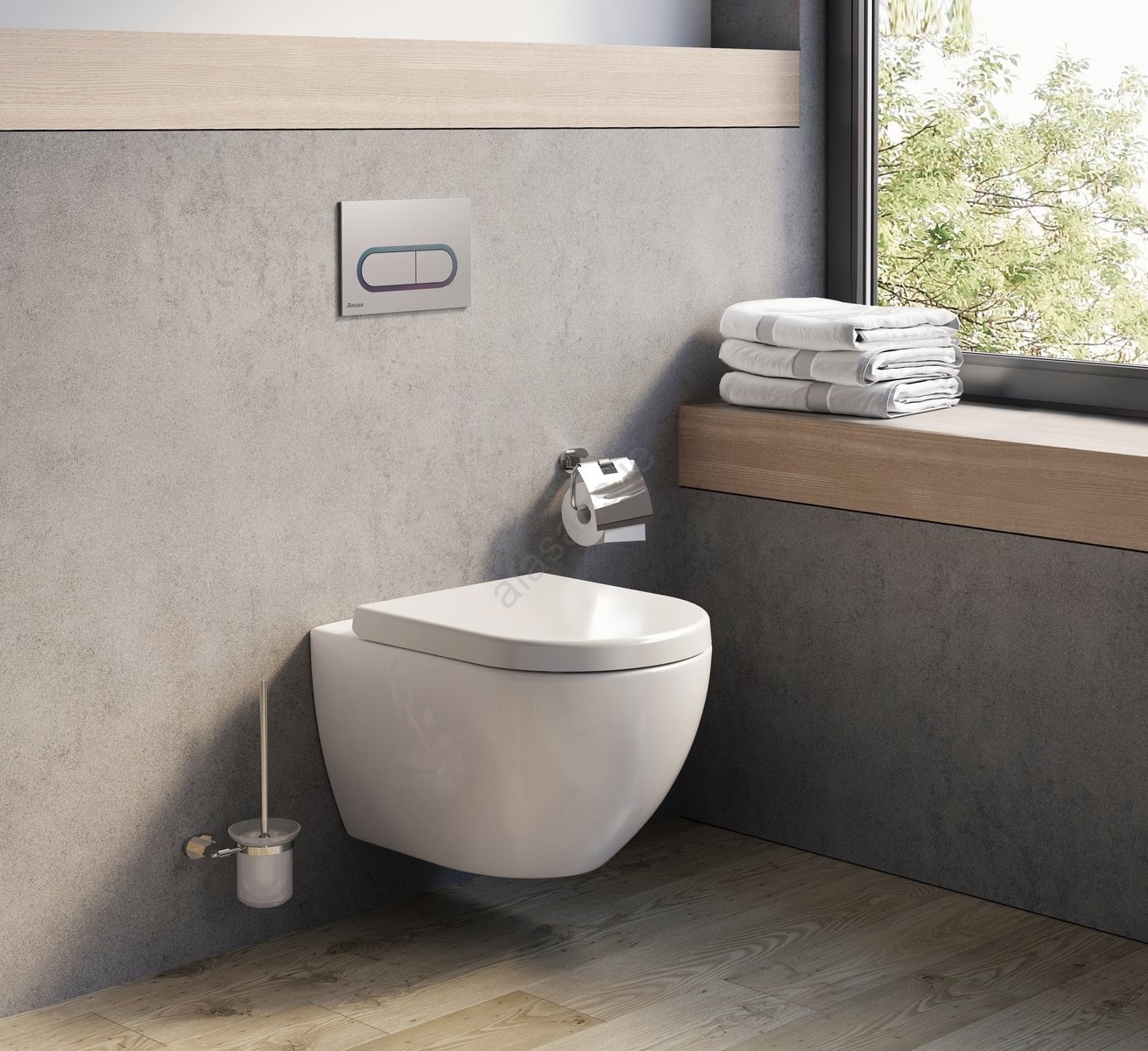 • It features RimOff flushing technology (rimless), which enables flushing of the entire bowl surface and ensures maximum hygiene.