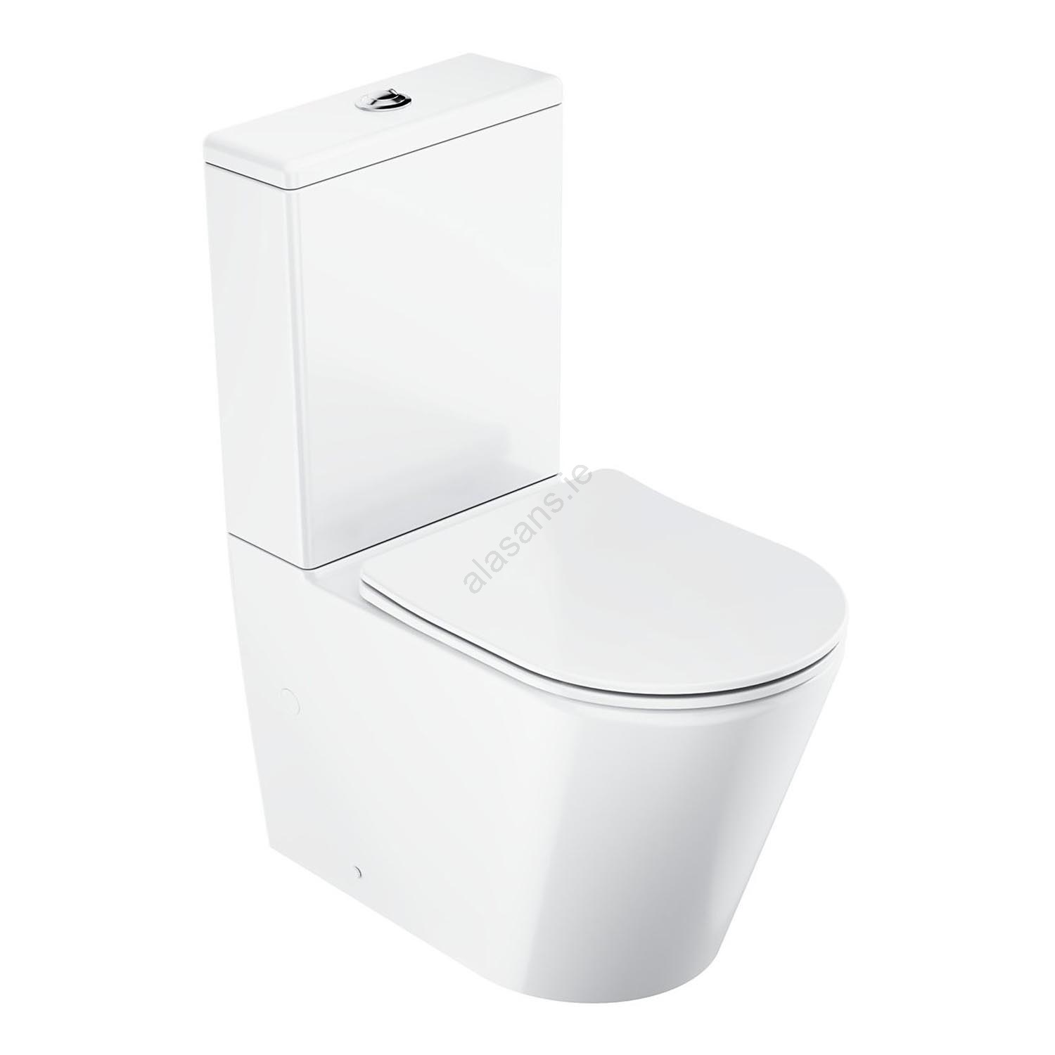• The toilet features a vario waste outlet, allowing connection to either a rear horizontal or bottom vertical discharge.
