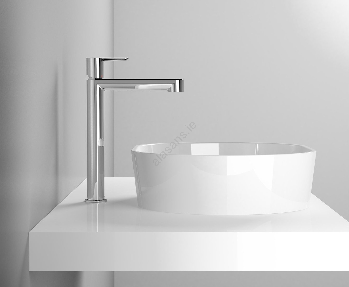 • Washbasin faucet Puri in a polished chrome finish features an extra-extended height of 320 mm, ideal for countertop basins.
