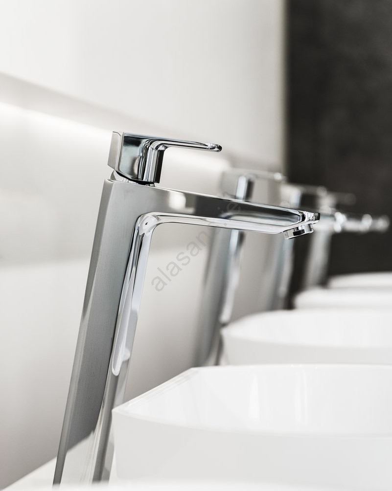 • The Free washbasin mixer in polished chrome features an extra-tall height of 334 mm, ideal for countertop basins.