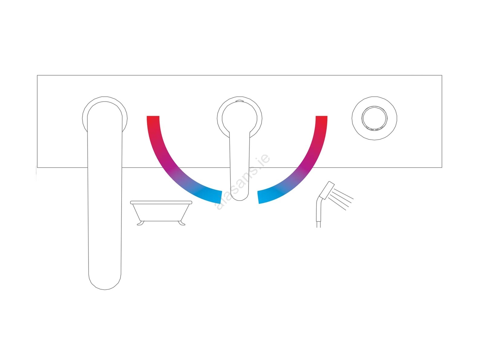 • Moving the lever to the right (shower) or to the left (bath) controls only the water temperature; the flow rate remains constant.