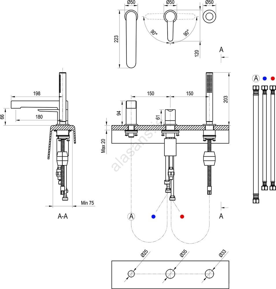 • This 3-hole bath mixer is an elegant addition to any bathroom.