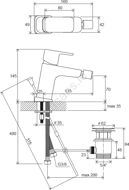 • Includes flexible connection hoses 450 mm long with G3/8 fittings.
