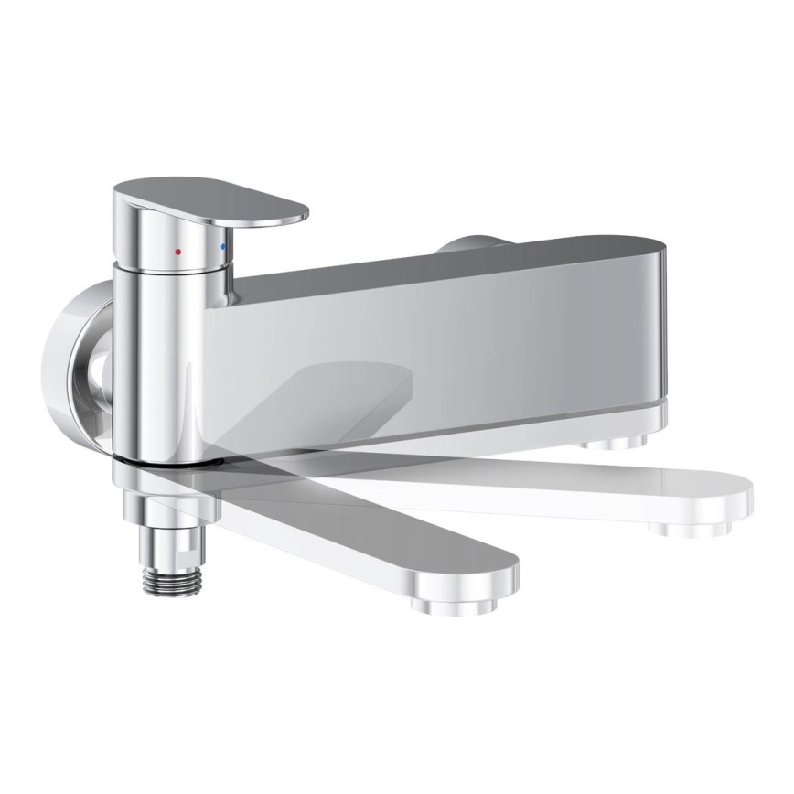 • The Chrome II wall-mounted bath mixer in a polished chrome finish offers a modern look and a practical solution for any bathtub.