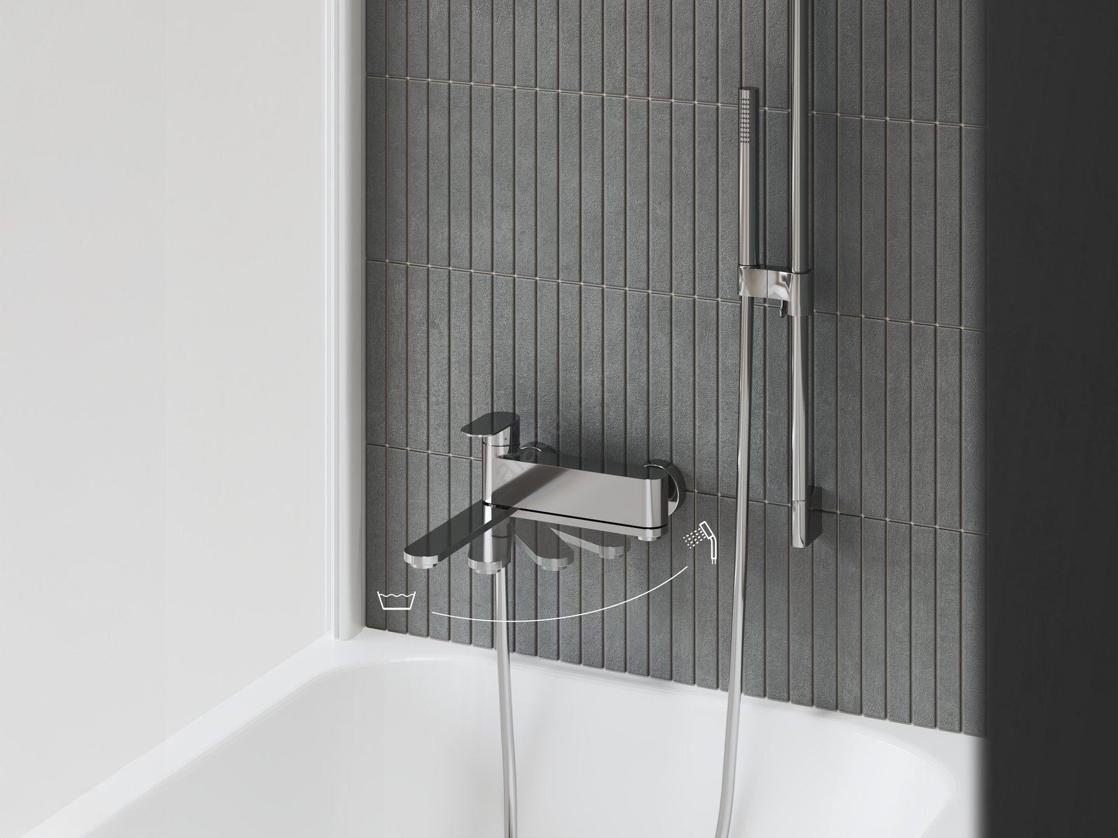 • A unique swiveling diverter arm combines the bath-filling function and shower switching in a single element.