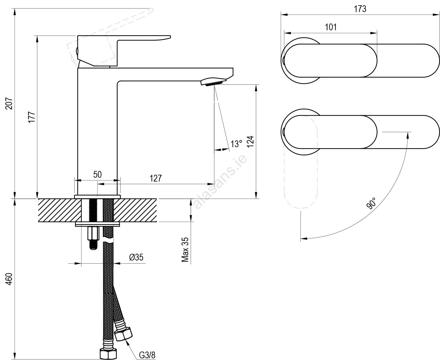 • Includes 450 mm flexible connection hoses with G3/8 fittings.
