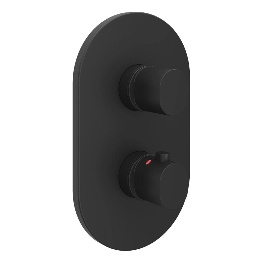 • The Chrome II thermostatic concealed 3-way mixer in an elegant black finish is designed for installation into an installation body.