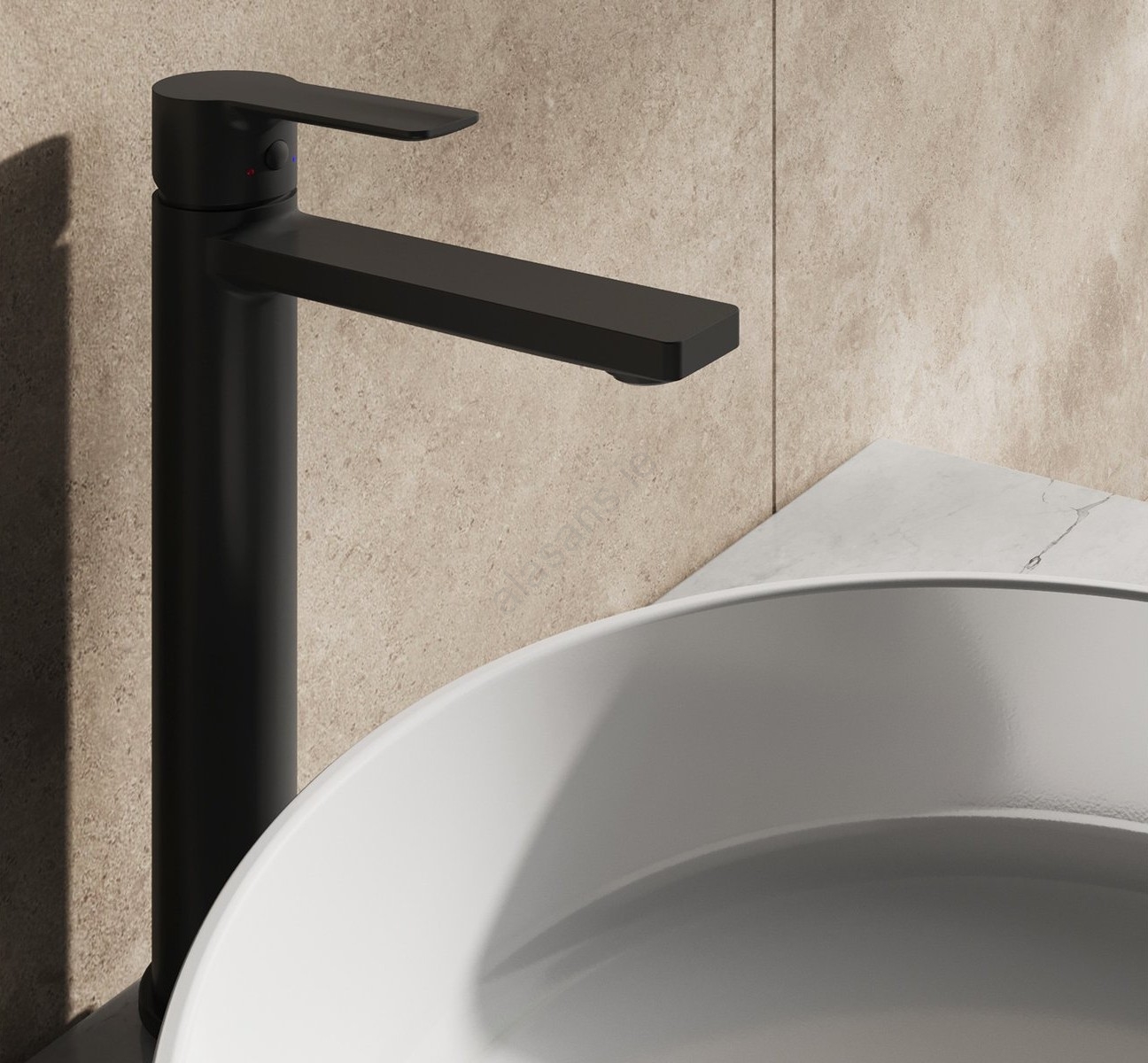 • The Solar basin faucet in a black finish features an extra-tall spout height of 290 mm, ideal for countertop basins.