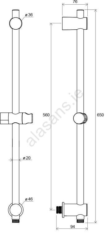 Ravak X07P342 - 65 cm shower rail with wall outlet, polished chrome