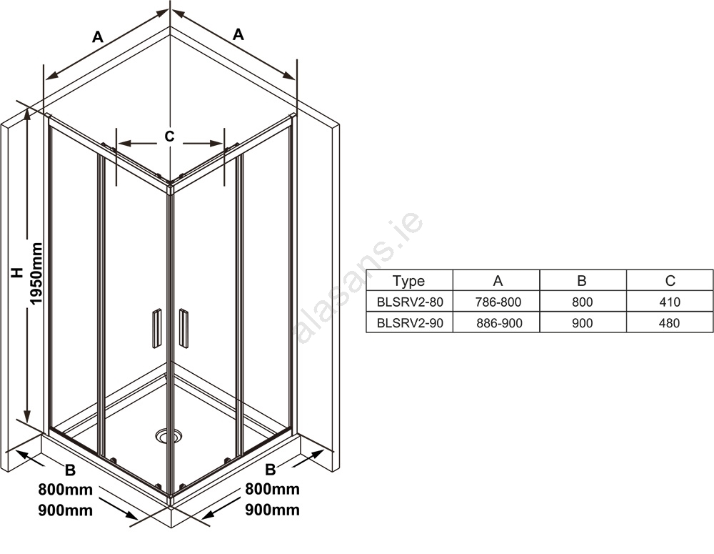 • The 195 cm-high enclosure is equipped with a sliding opening system composed of two fixed and two sliding panels.