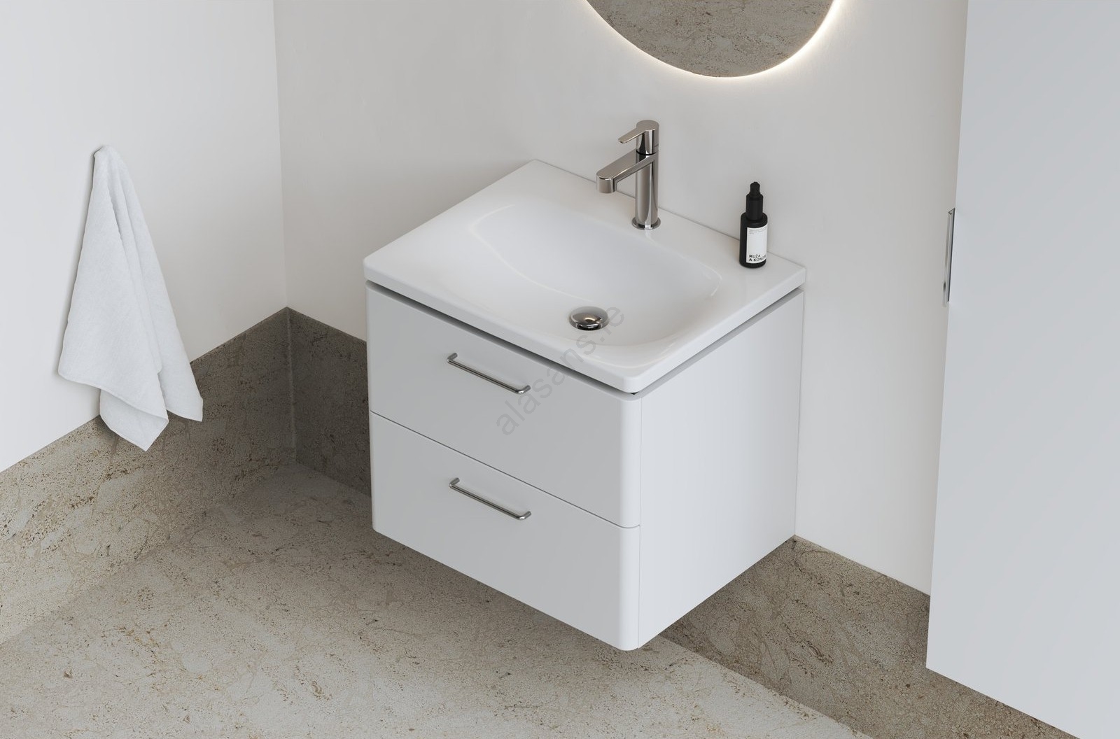 • The Balance vanity basin measuring 50 x 46,5 x 3 cm is designed to be inset into a wall-hung vanity unit.