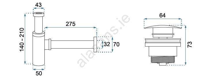 REA-A5693 - Washbasin trap with CLICK-CLACK waste, Ø 6.4 cm, polished chrome