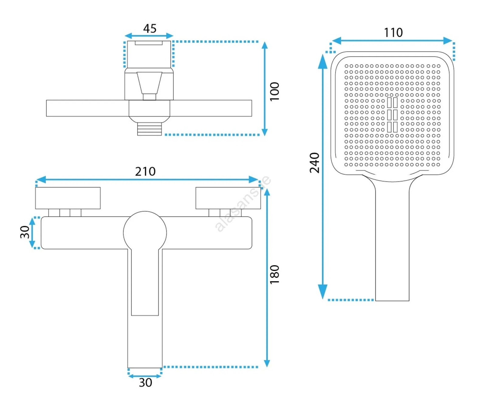 • Set includes: bathtub faucet, handheld shower, shower hose, handheld shower holder.