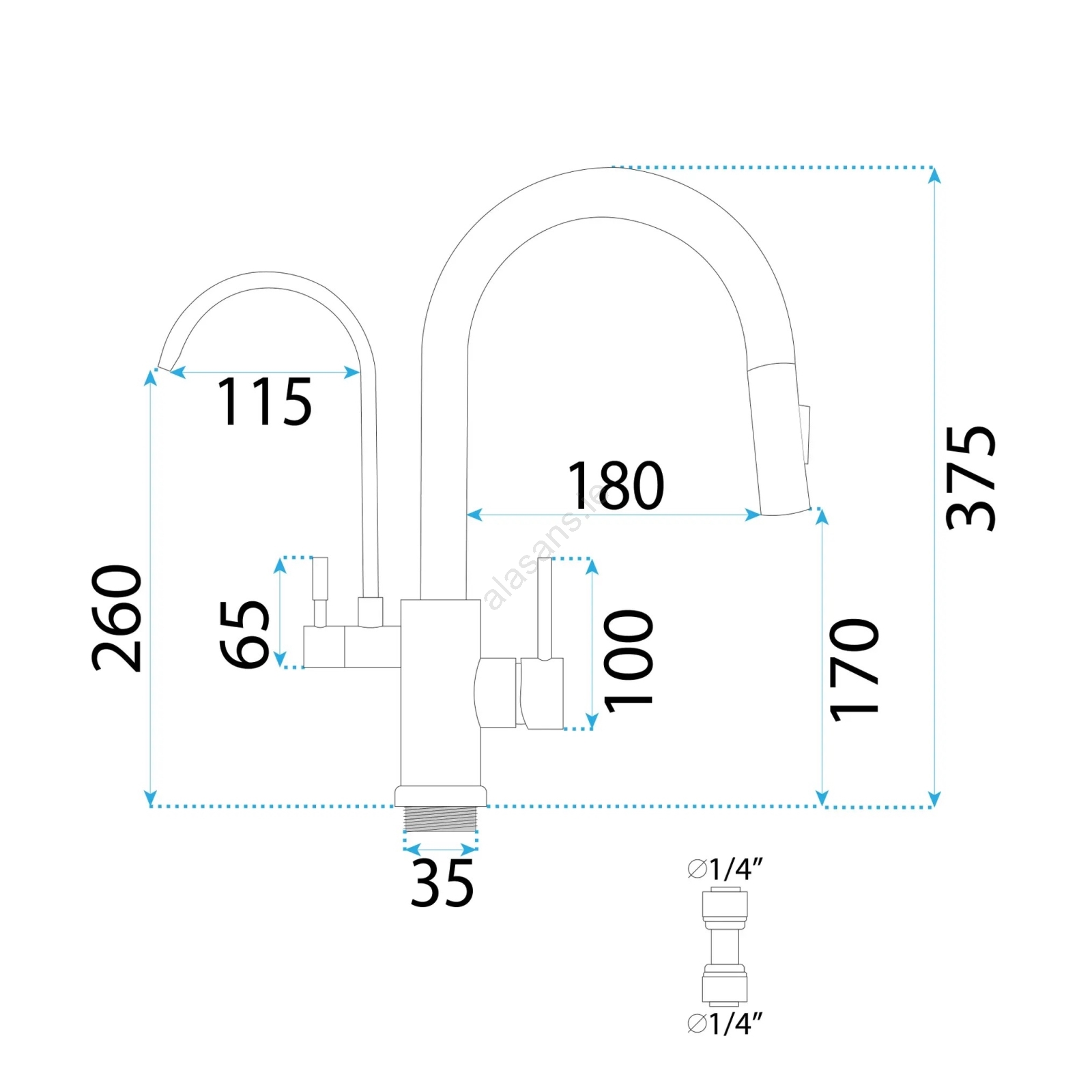 • Can be connected to a water filtration system (controlled by the smaller lever).