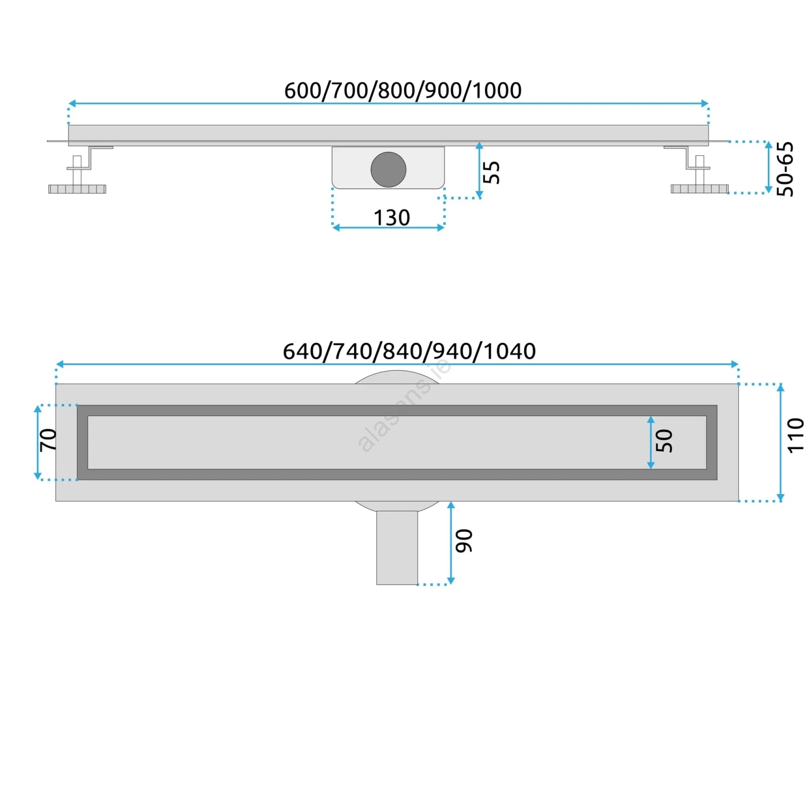 • 60 cm linear drain with a gold finish.