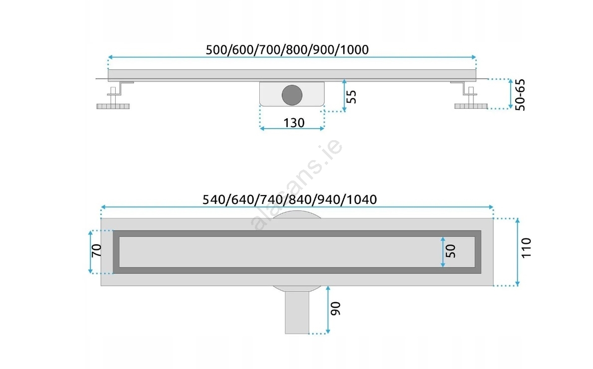 • Height-adjustable feet (50–65 mm) allow the drain to be easily adapted to different floor conditions.