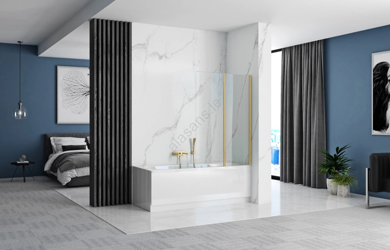 REA-K9777 - Folding bathtub screen AGAT 140x100 cm brushed gold/clear