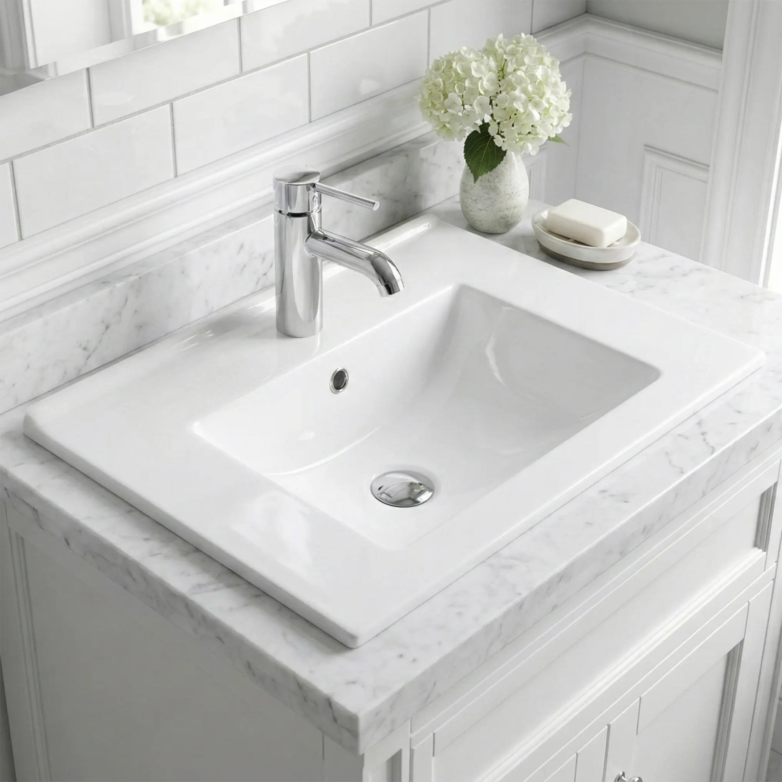 • The washbasin is crafted from high-quality sanitary ceramic.