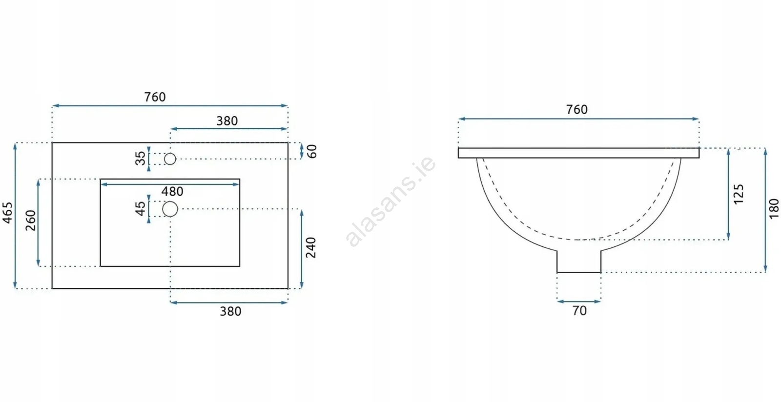 • Washbasin tap and drain are not included in the package.