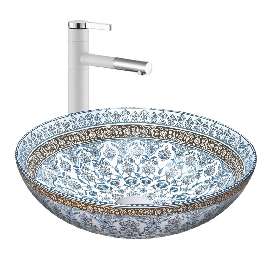 REA-U0267 - ARTE countertop basin, 40 cm diameter, ceramic with ornamental pattern