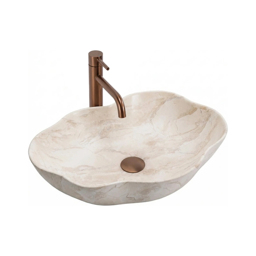 • REA-U0618 - PEARL Countertop Basin 38x50.5 cm ceramic/beige/stone effect