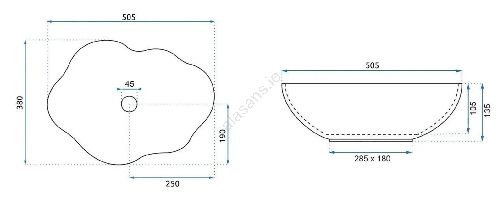 • The washbasin mixer and drain are not included in the package.