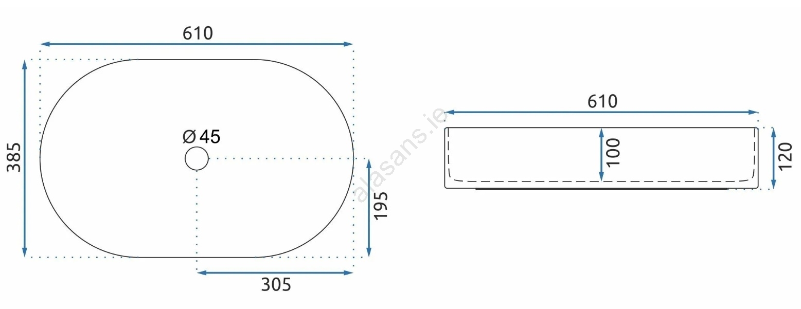 REA-U1055 - NADIA Countertop Basin 38.5x61 cm Ceramic/Glossy White