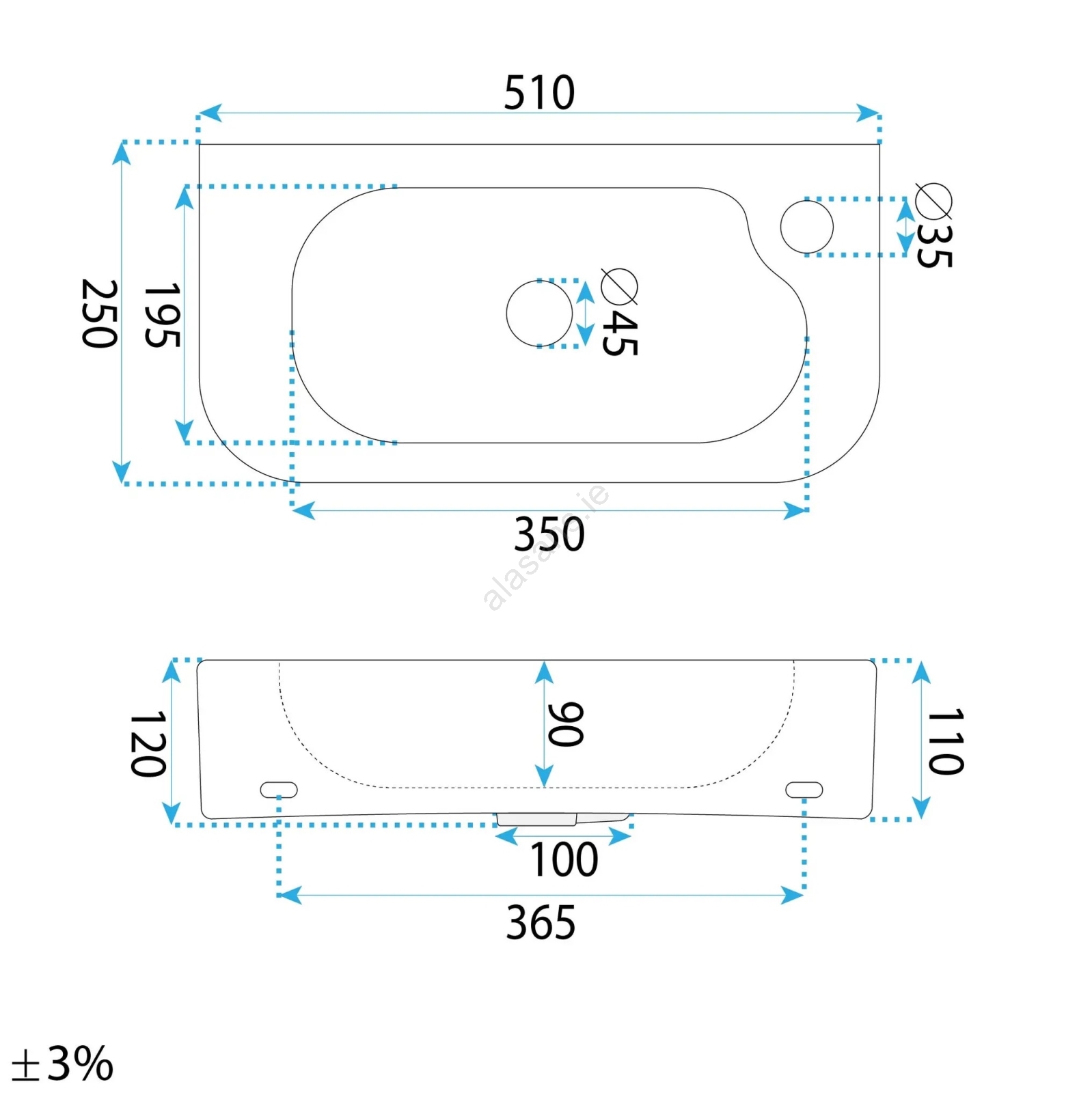 REA-U3610 - ODETTA countertop/wall-mounted washbasin 25x51 cm ceramic/glossy white