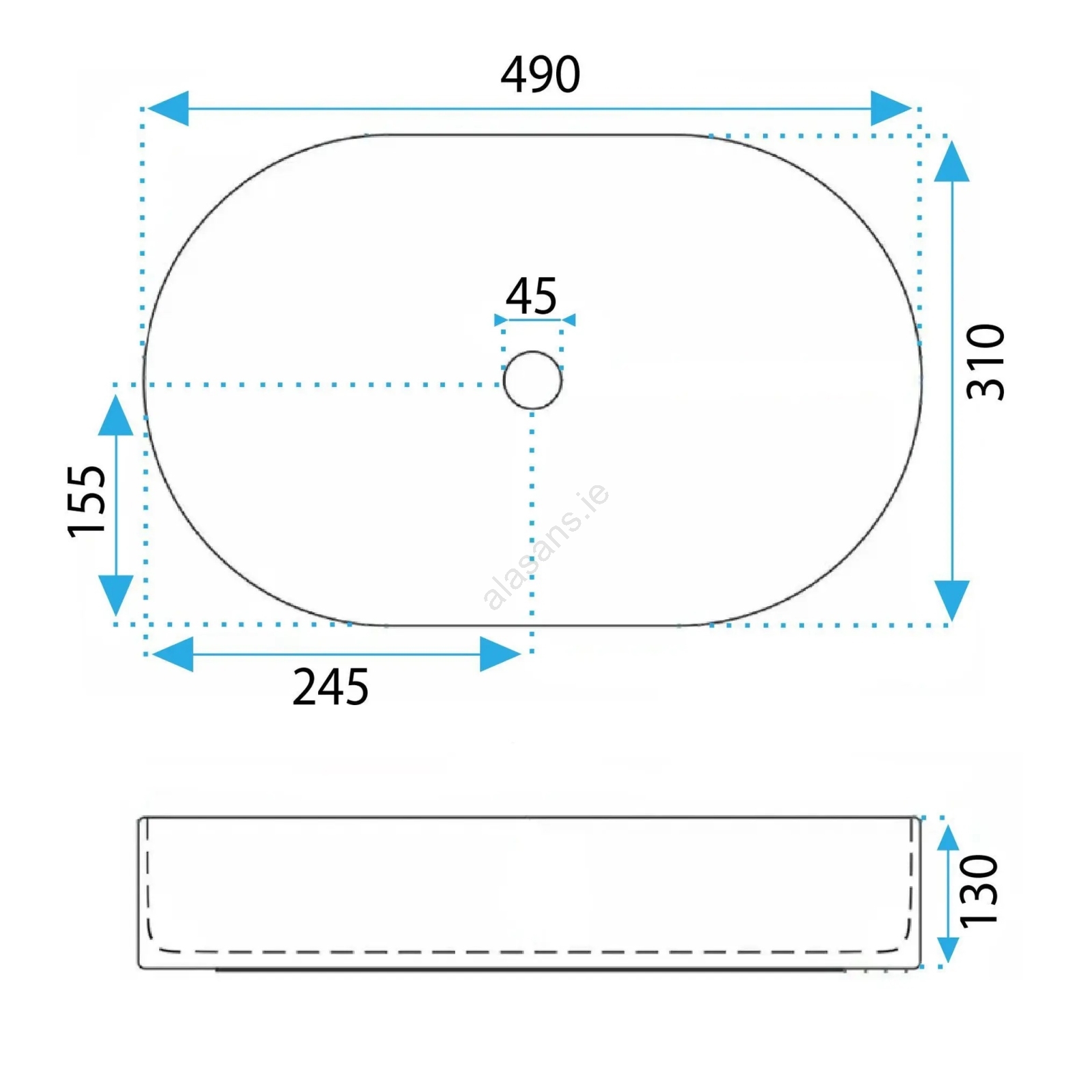 • REA-U3535 - VANDA countertop basin 31x49 cm, ceramic/dark blue
