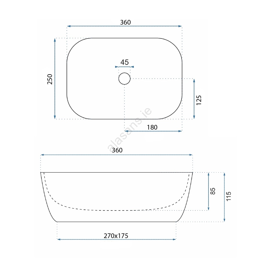 REA-U5667 - BELINDA MINI Countertop Basin 25x36 cm ceramic/glossy white