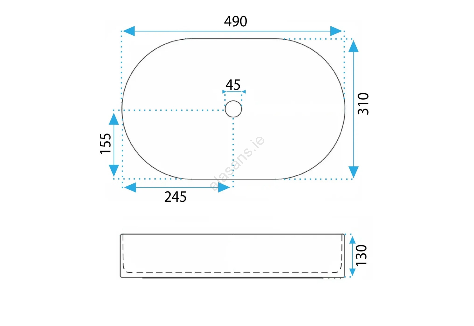 REA-U6375 - VANDA Countertop Basin 31x49 cm, Ceramic / Matte Blue