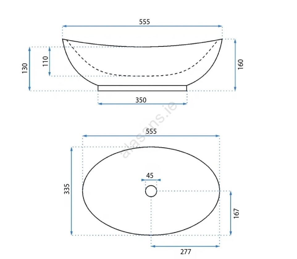 REA-U6801 - KATE Countertop Basin 33.5 x 55.5 cm, ceramic/glossy white