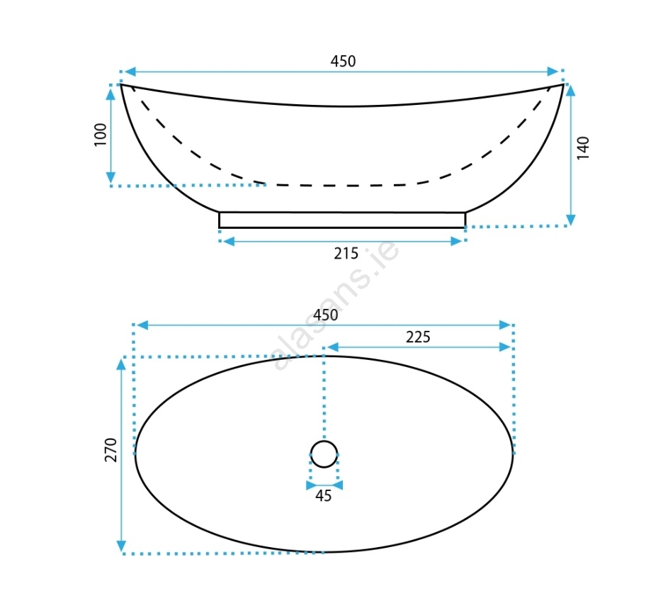 REA-U6802 - KATE Countertop Basin 27 x 45 cm, Ceramic / Glossy White