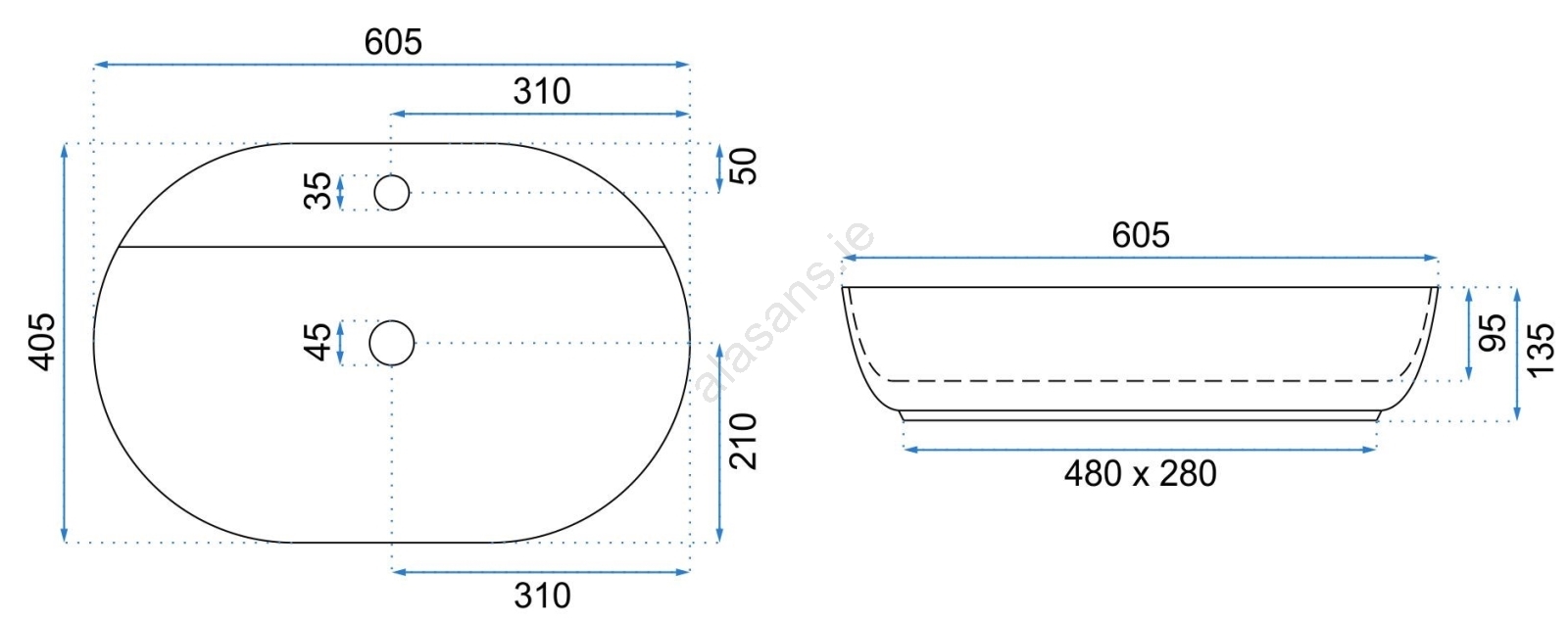 REA-U7900 - AURA Countertop Washbasin 40.5 x 60.5 cm, Ceramic / Glossy White