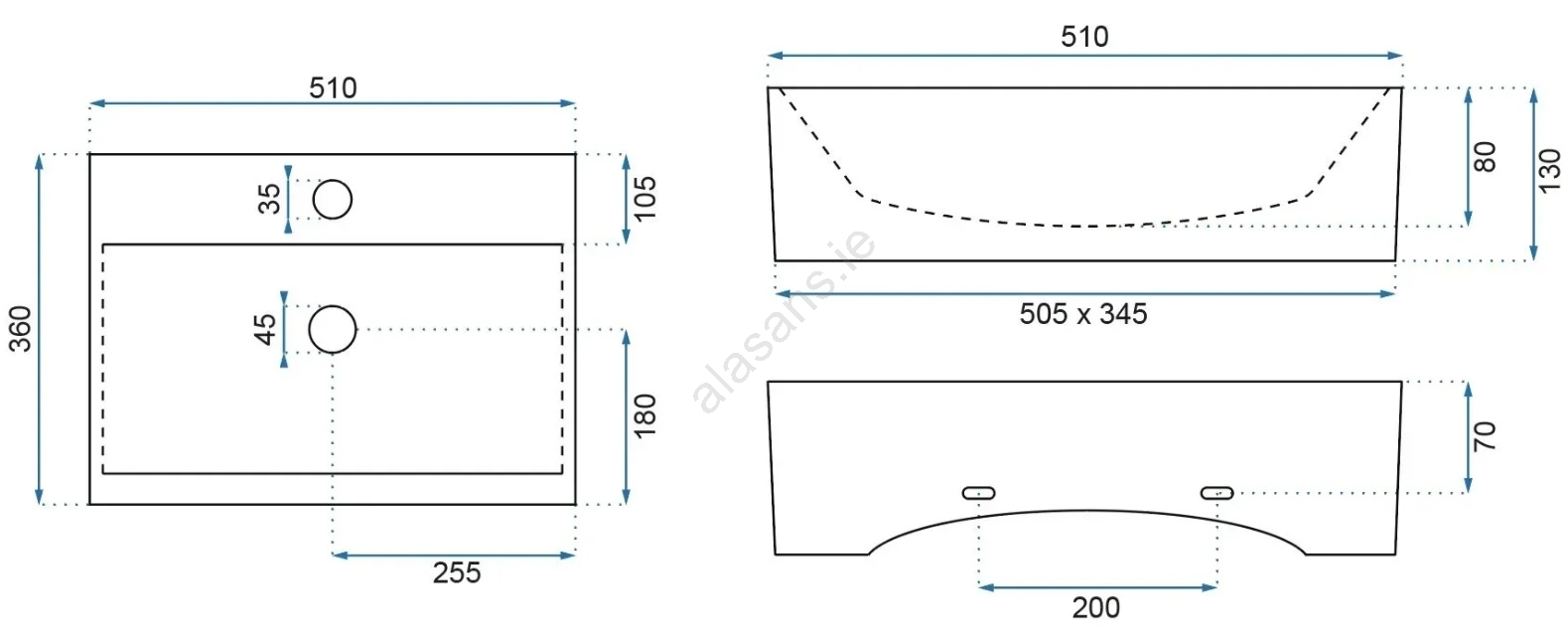 REA-U8701 - BONITA Countertop basin 36x51 cm ceramic/glossy white