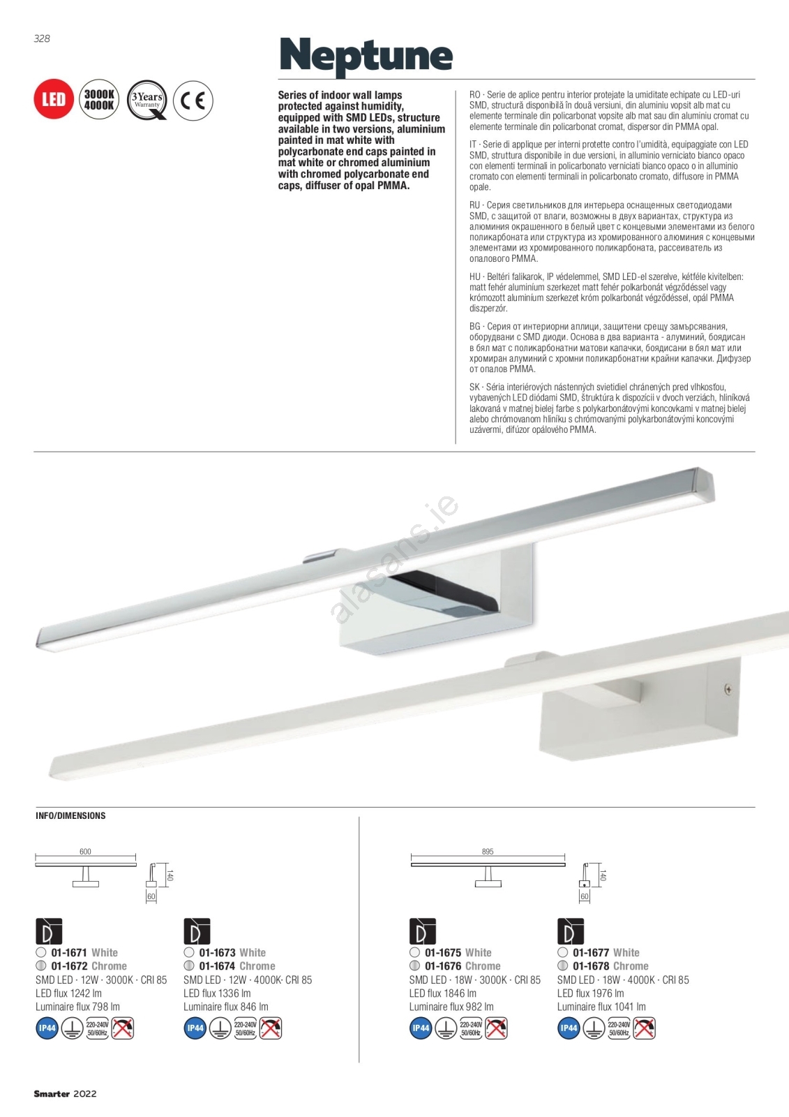 • Redo 01-1671 - LED Bathroom Mirror Light NEPTUNE LED/12W/230V 60 cm IP44 White