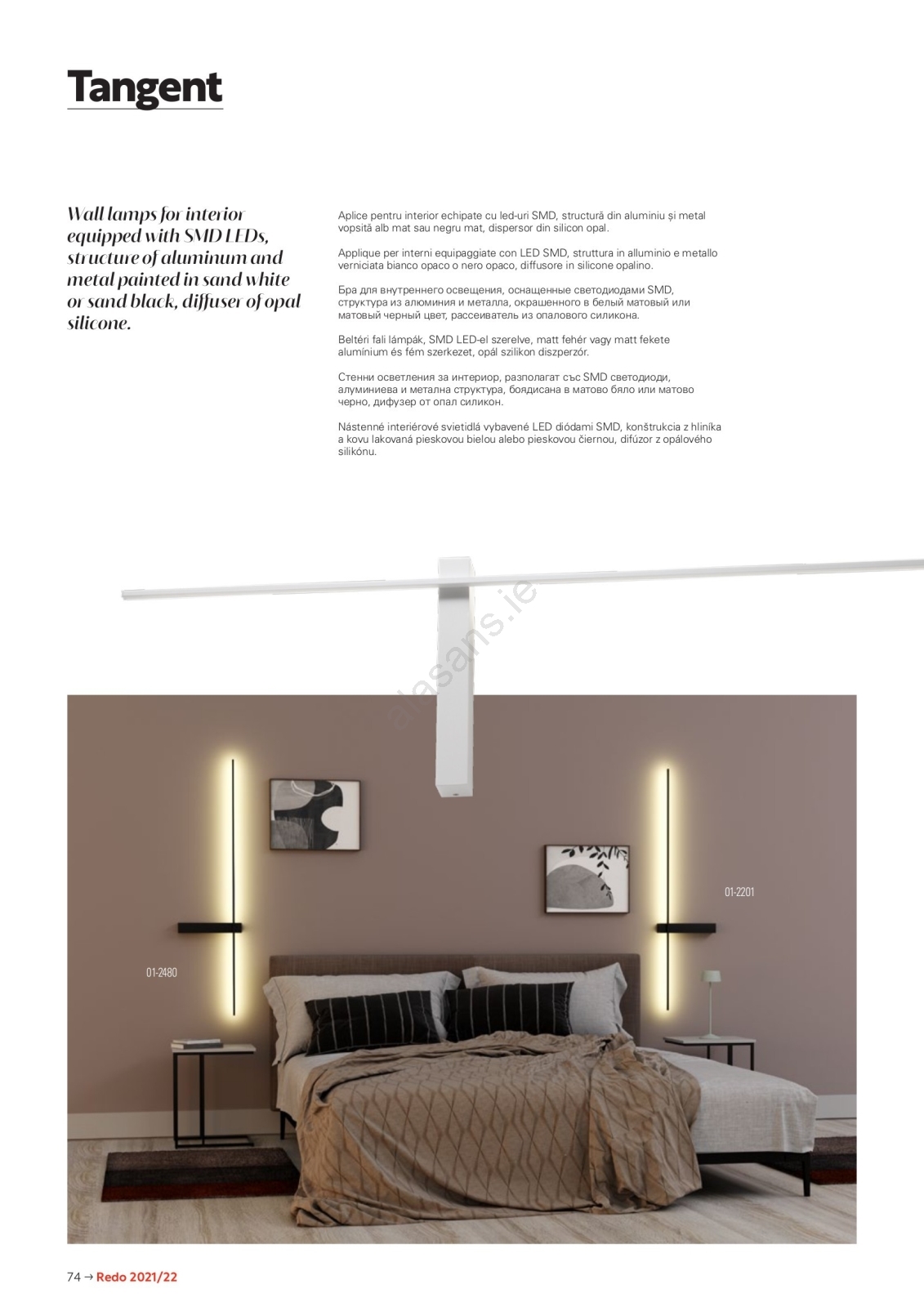 Redo 01-2200 - LED Wall Light TANGENT LED/14W/230V 3000K 125,4 cm white is a modern lighting solution for your home. The light takes advantage of Integrated LED module, which provides effective and energy-saving lighting.The design and the high quality of the light ensure a long lifespan and satisfaction with your lighting.