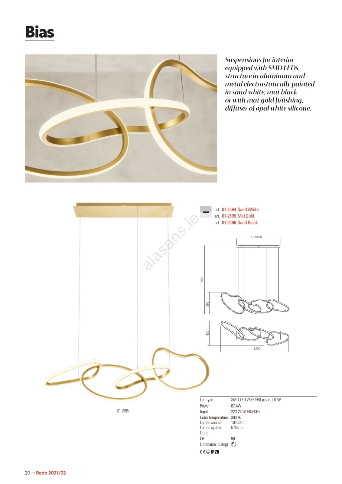 • Redo 01-2594 - Dimmable cable-suspended pendant light BIAS LED/87,4W/230V 3000K CRI 90 white