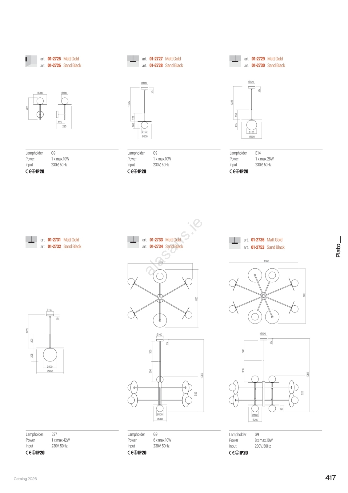 • Redo 01-2735 - PLATO Rod Chandelier 8xG9/10W/230V, Gold