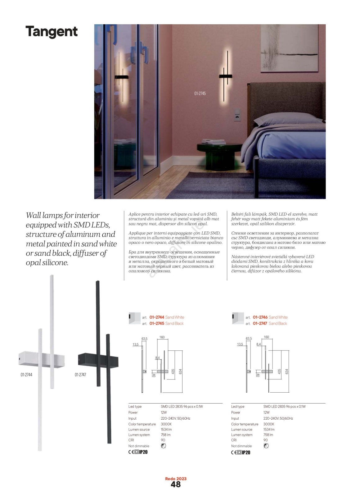 Redo 01-2746 - LED Wall Light TANGENT LED/13W/230V 3000K 63,4 cm CRI 90 white is a modern lighting solution for your home. The light takes advantage of Integrated LED module, which provides effective and energy-saving lighting.The design and the high quality of the light ensure a long lifespan and satisfaction with your lighting.