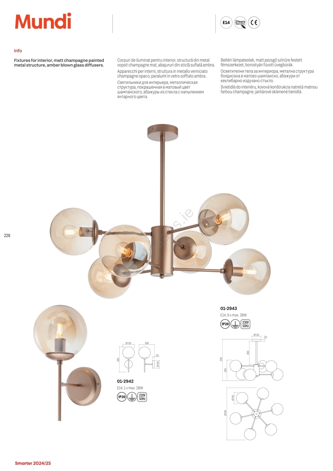 Redo 01-2943 - Chandelier on a pole MUNDI 6xE14/28W/230V copper