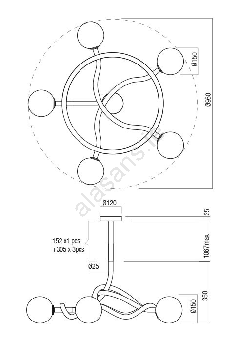 Redo 01-3259 - CONFUSIO Rod-Mounted Chandelier 5xE14/28W/230V, Ø 96 cm, Black characterizes nice and functional design.  A bulb with E14 cap is suitable for the light. Here, you can buy other bulbs at advantageous prices. You will have an interesting addtiion to your home.